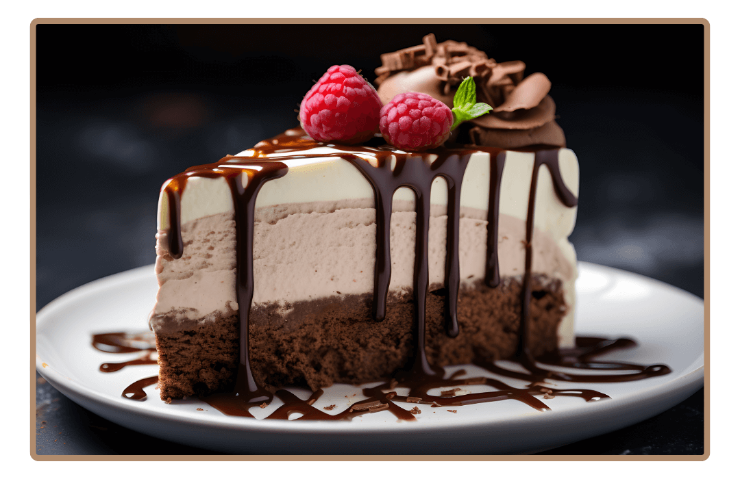 Massa de chocolate e cobertura chantilly de chocolate.